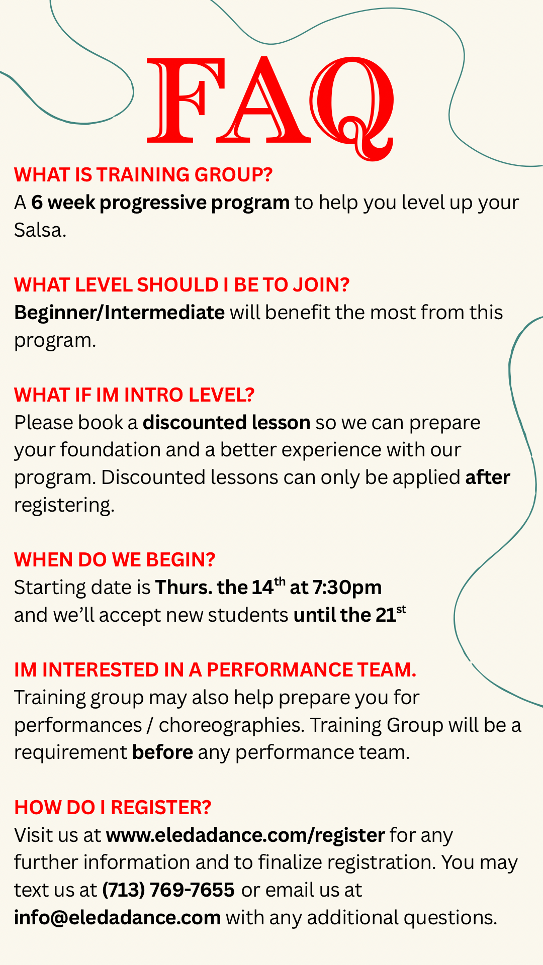 Text us (713) 769-7655 use the form below or email us info@eledadance.com